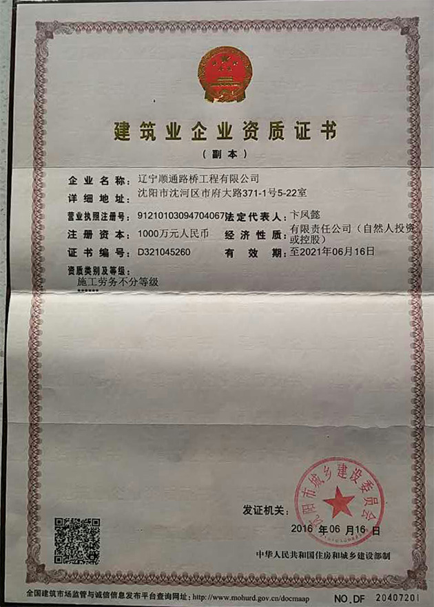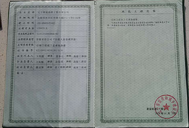 公司名稱:遼寧順通路橋工程有限公司